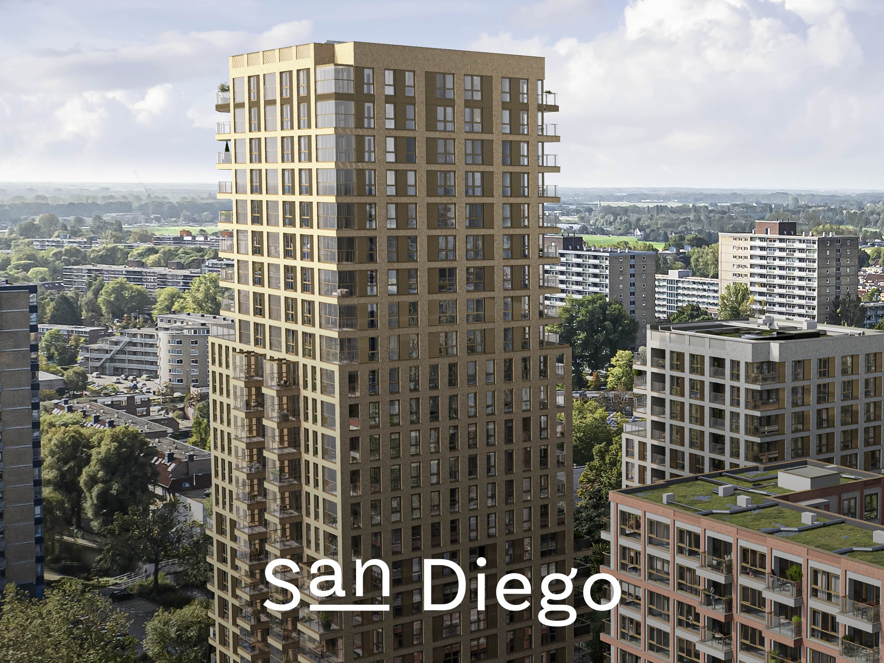 Met 22 verdiepingen is San Diego de hoogste woontoren van HIGH5. Dit markante gebouw biedt ruimte aan 172 koopappartementen in uiteenlopende typen, met oppervlakten variërend van circa 52 m2 tot circa 91 m2. Van compacte tweekamerappartementen met loggia tot riante driekamerwoningen met privéterras op het zuiden. En alles wat daartussen zit. Kortom: hier geniet je van stads wonen op een manier die bij jou past!